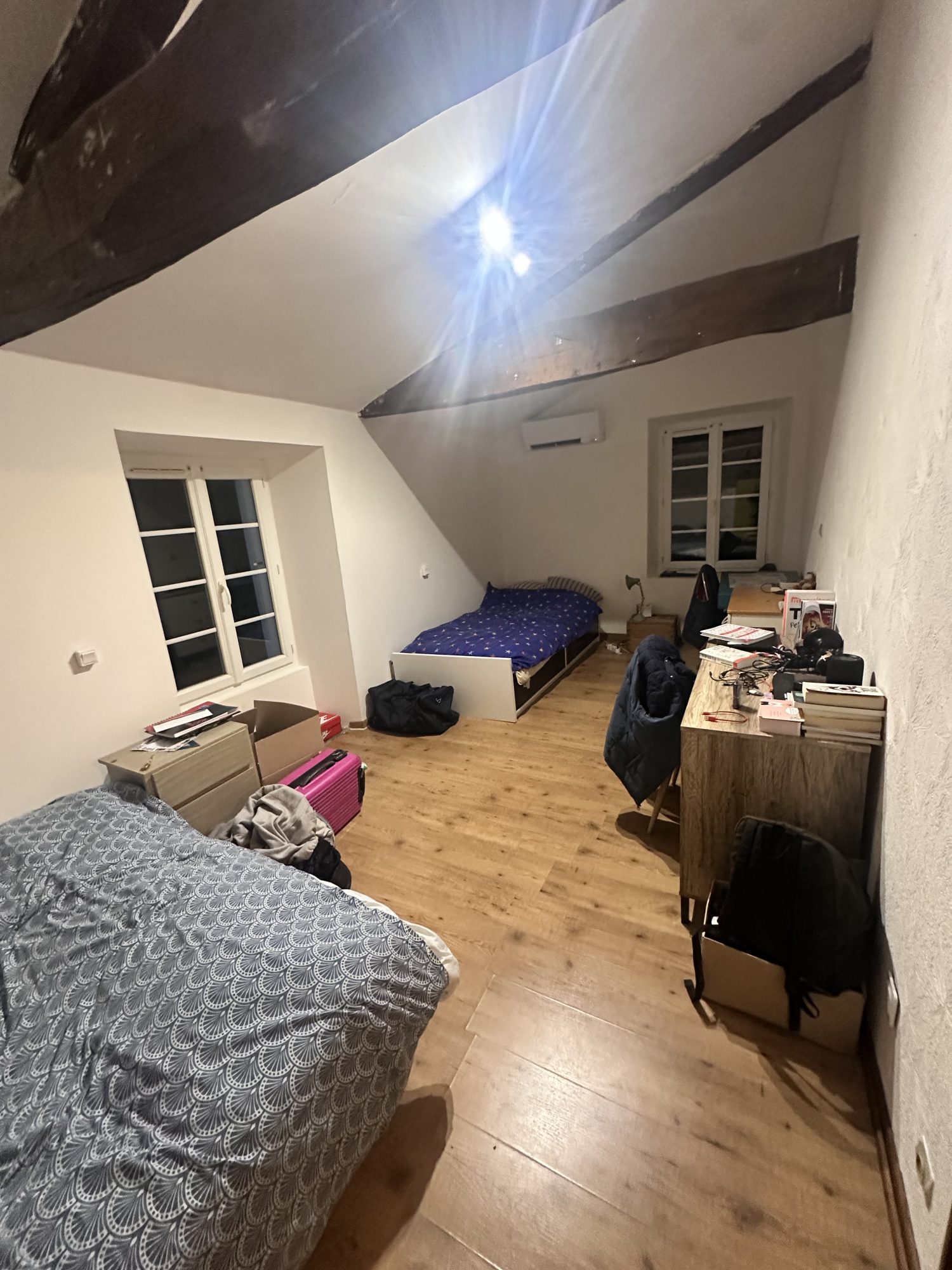 A l'étage, un pallier, et 2 grandes chambres.