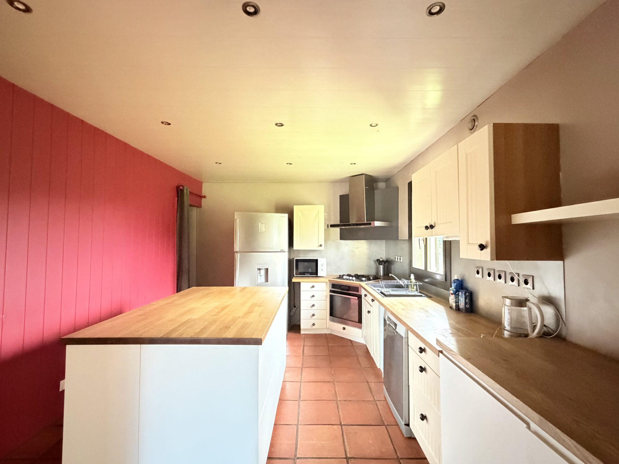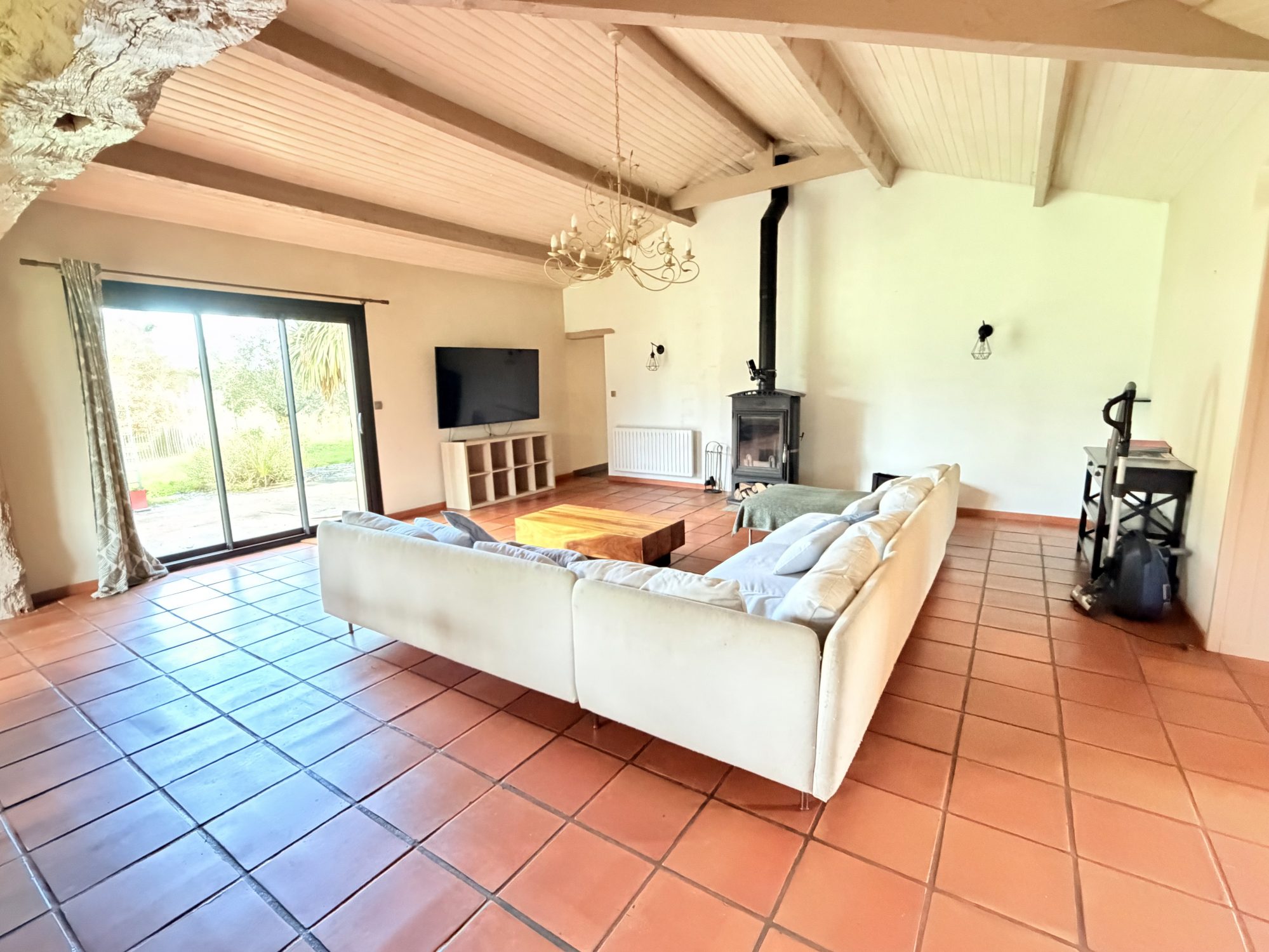 D’une surface habitable d’environ 199 m², la maison offre de beaux volumes et une distribution fonctionnelle. Elle se compose d’un vaste séjour cathédrale d’environ 60 m², très lumineux, avec une cuisine aménagée et équipée ouverte sur la pièce de vie, complétée par une arrière-cuisine.