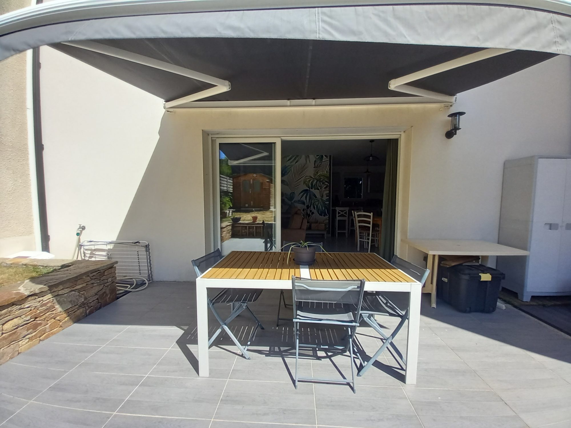 Profitez d'un jardin et d'une terrasse exposés ouest, parfaits pour des repas en plein air ou des moments de détente au soleil. La vue sur le jardin et la terrasse depuis le séjour apporte une sensation d'ouverture et de sérénité.