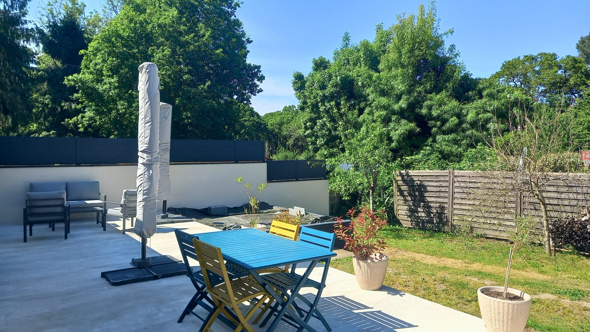 En entrant, vous serez immédiatement charmé par la belle pièce de vie lumineuse qui donne sur une grande terrasse sans vis à vis. La cuisine aménagée et équipée ainsi que la salle de bains et les WC se trouvent également au rez-de-chaussée. À l'étage, vous découvrirez un dégagement offrant de nombreux rangements ainsi que trois chambres allant de 9,20 m² à 12,20 m². Un garage attenant à la maison complète ce bien, qui est implanté sur un terrain d'environ 400 m².