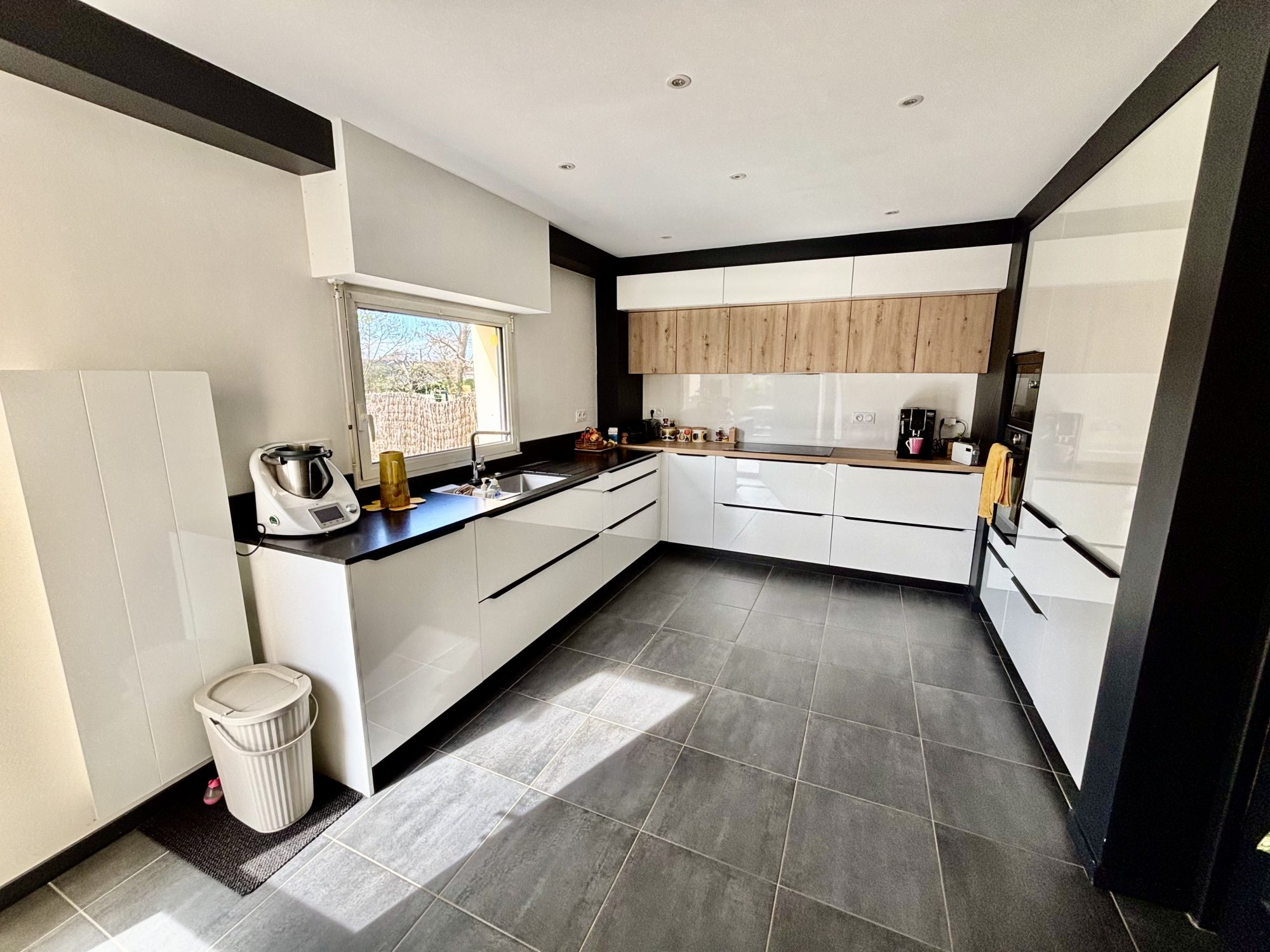 A l'intérieur prestations de qualité et décoration soignée sont au rendez-vous. Profitez d’une entrée avec plafond cathédrale, suivie d’un espace de vie de plus de 55 m² avec salon, salle à manger et cuisine ouverte entièrement aménagée et équipée avec matériaux et électroménager haut de gamme. Cette pièce de vie chaleureuse et lumineuse s’ouvre sur une terrasse et un jardin exposés ouest.