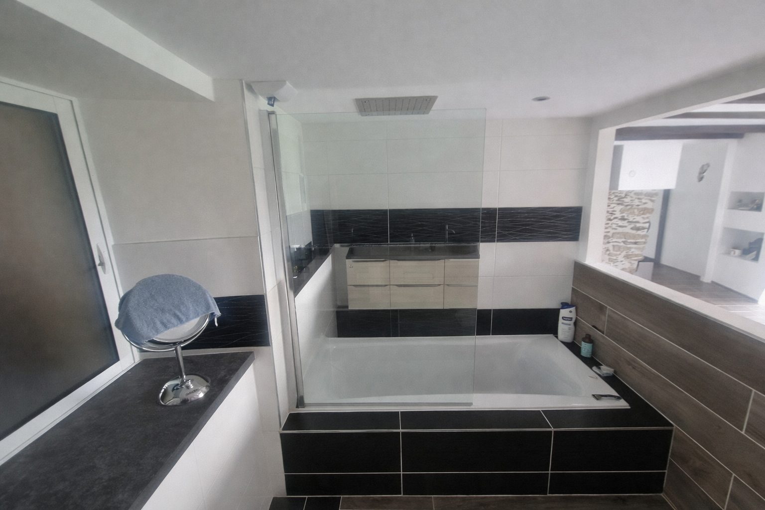 Une magnifique suite parentale, avec penderie et salle de bain complète (double vasque, douche à l’italienne, baignoire),
