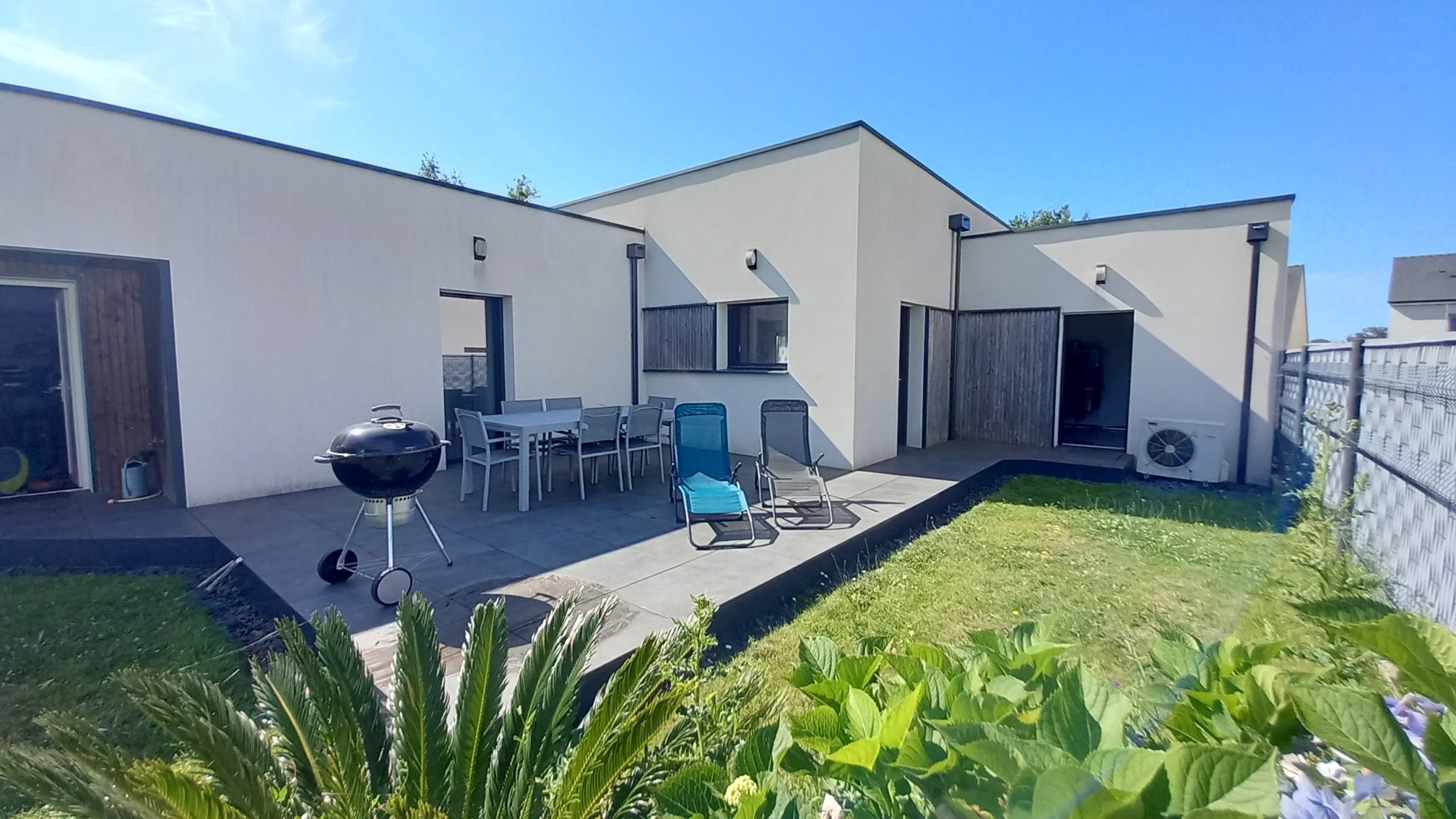 AU CALME DE SON IMPASSE DANS QUARTIER RECHERCHÉ A PROXIMITÉ DE TOUTES LES COMMODITÉS !! Contemporaine récente de plain-pied, ultra-fonctionnelle elle saura vous séduire avec son espace de vie de 62 m² lumineux exposé plein SUD et sa cuisine américaine aménagée et intégralement équipée. Elle dispose de trois grandes chambres avec placards, une salle de bain avec baignoire et douche à l'italienne et WC séparés. Très pratique au quotidien avec ses nombreux rangements, un grand cellier entre le garage et la pièce de vie, un garage à vélo de 15 m² pouvant facilement se transformer en espace de télétravail indépendant. Vous apprécierez les prestations de qualités de cette maison, chauffage au sol, volets roulants électrique, toiture végétalisée etc...