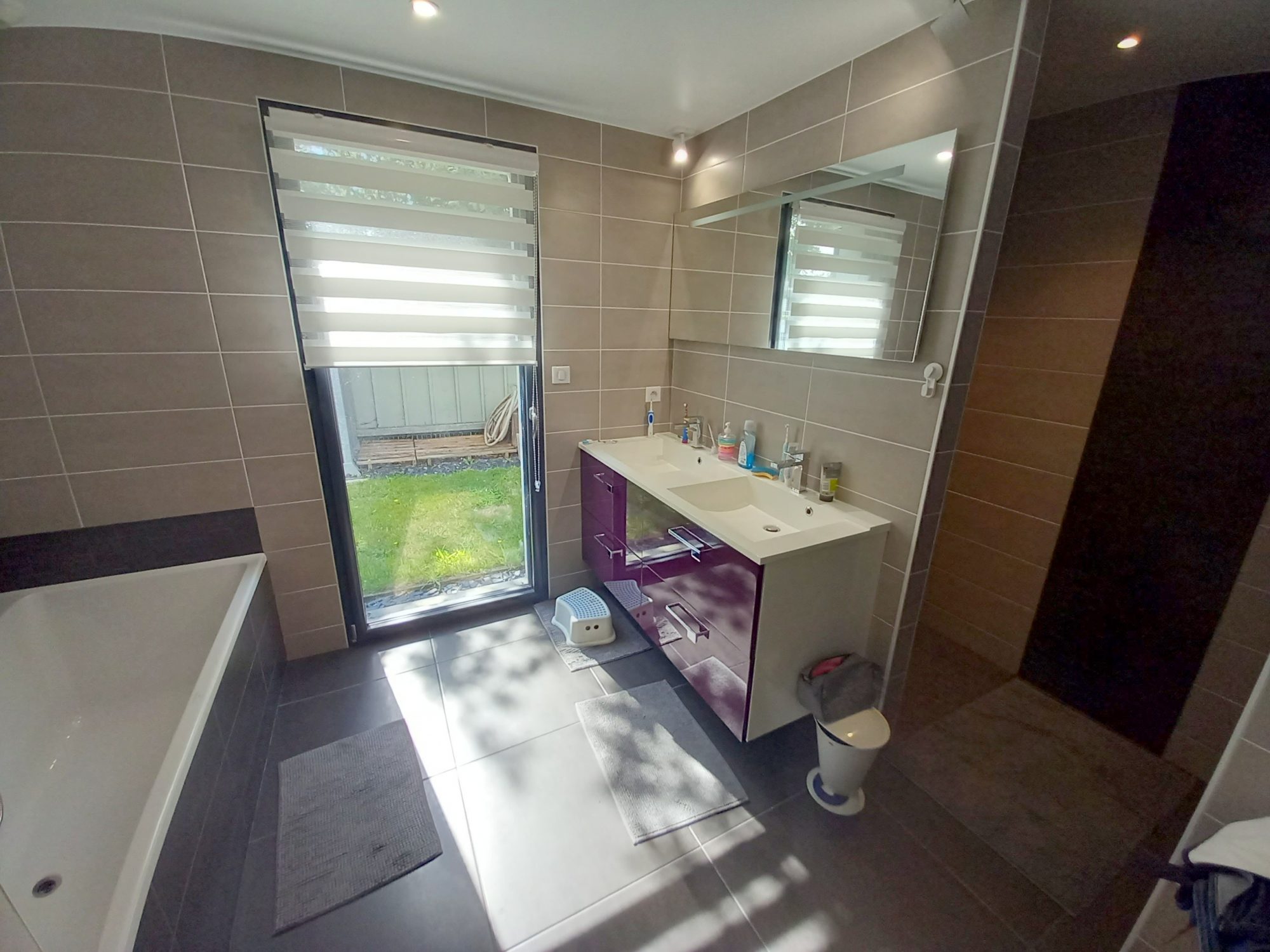 AU CALME DE SON IMPASSE DANS QUARTIER RECHERCHÉ A PROXIMITÉ DE TOUTES LES COMMODITÉS !! Contemporaine récente de plain-pied, ultra-fonctionnelle elle saura vous séduire avec son espace de vie de 62 m² lumineux exposé plein SUD et sa cuisine américaine aménagée et intégralement équipée. Elle dispose de trois grandes chambres avec placards, une salle de bain avec baignoire et douche à l'italienne et WC séparés. Très pratique au quotidien avec ses nombreux rangements, un grand cellier entre le garage et la pièce de vie, un garage à vélo de 15 m² pouvant facilement se transformer en espace de télétravail indépendant. Vous apprécierez les prestations de qualités de cette maison, chauffage au sol, volets roulants électrique, toiture végétalisée etc...