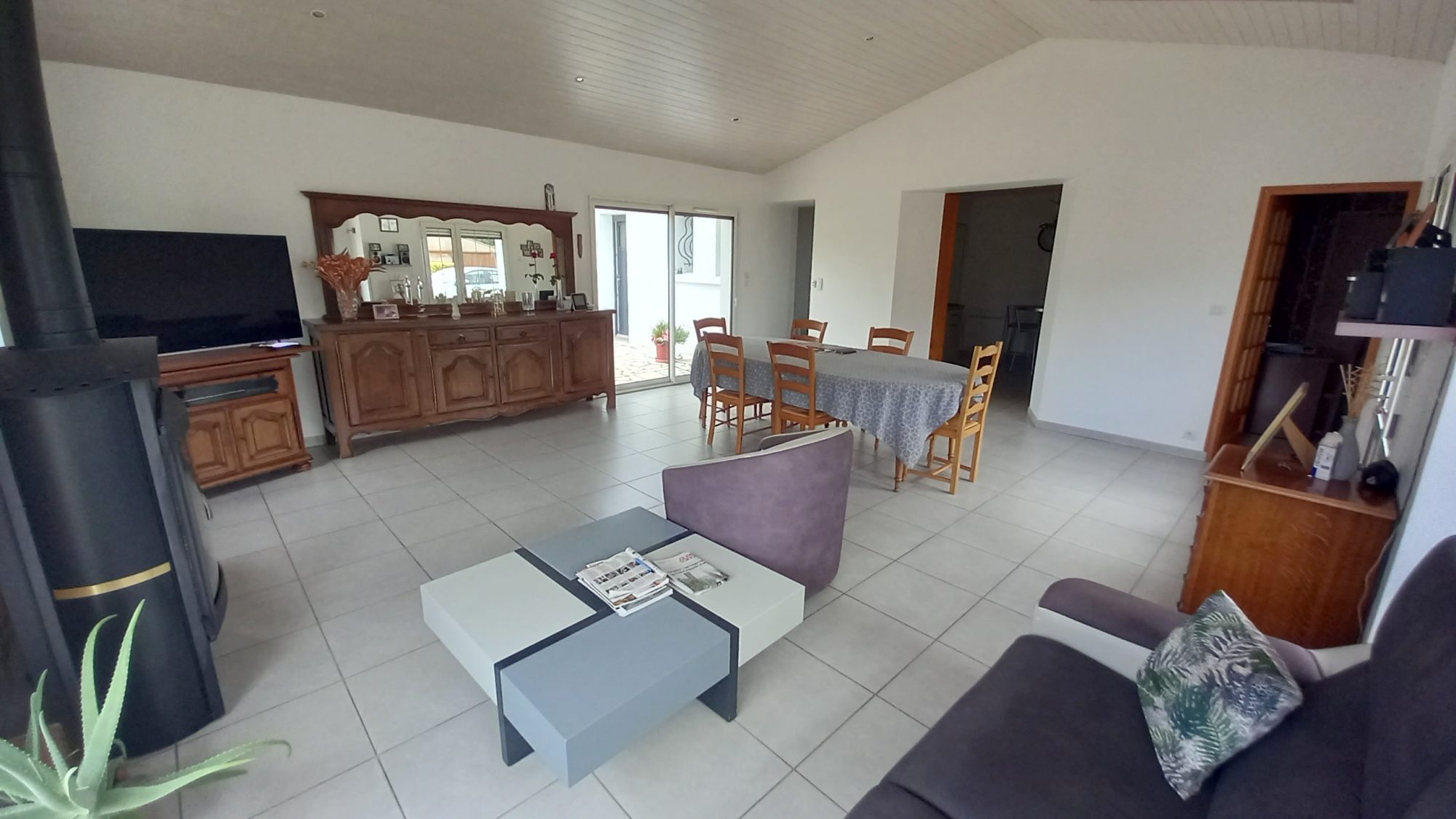 La maison principale développe126 m² habitables de plain-pied, elle se compose d'une grande pièce de vie de 40 m² avec poêle à bois baignée de lumière avec ses grandes baies vitrées, une cuisine récente entièrement aménagée et équipée, un bureau, quatre chambres, salle d'eau, buanderie et WC séparés. Grenier aménageable au dessus.