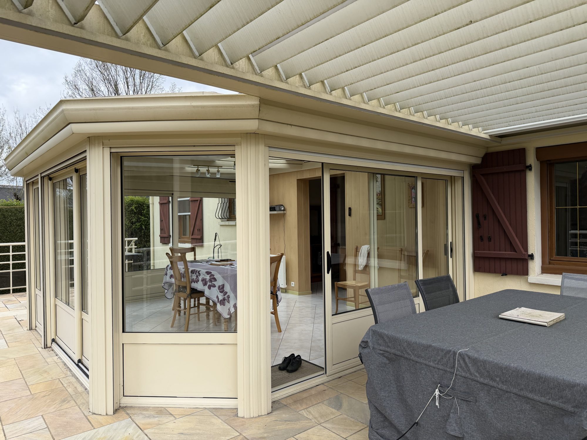Vous retrouverez aussi une véranda baignée de lumière naturelle tout au long de l'année. Elle donne accès à une belle terrasse agrémentée d'une pergola bioclimatique, parfaite pour vos moments de détente en extérieur.