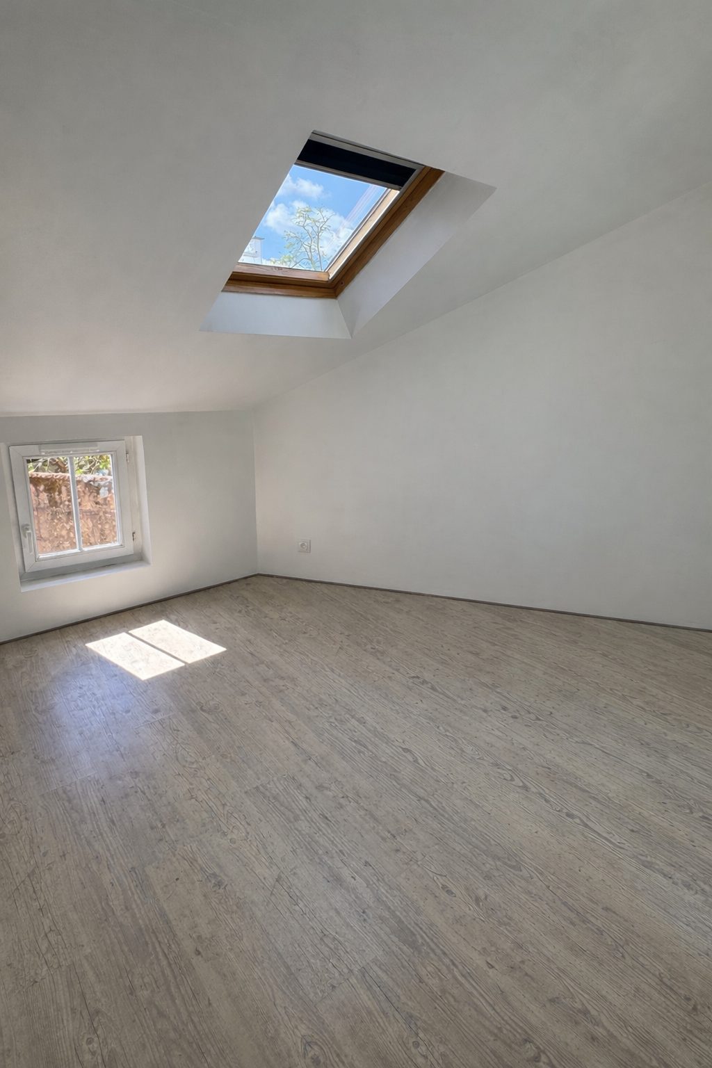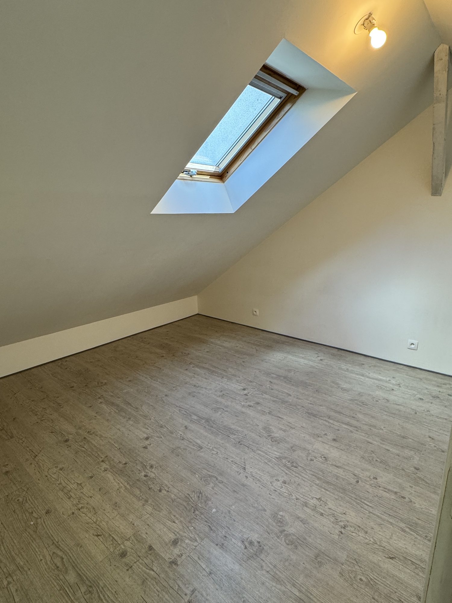 À l’étage, deux chambres sous combles proposent de beaux volumes au sol et bénéficient d'une luminosité naturelle apportée par les fenêtres de toit, offrant une atmosphère chaleureuse, idéales également pour des espaces de travail.
