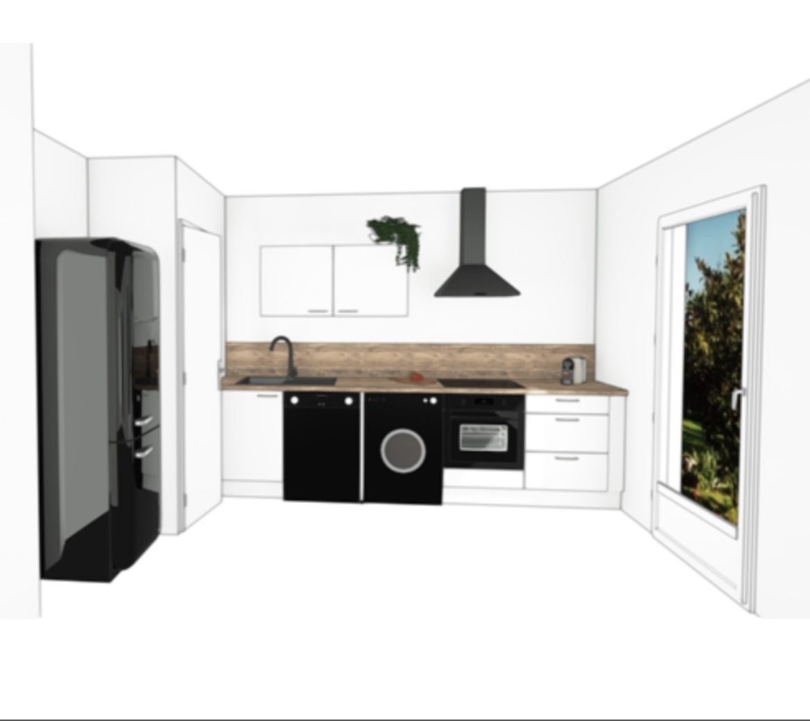 La pièce de vie et sa cuisine aménagée et équipée (hotte, plaque, four) donne sur une très belle terrasse de 41 m² allant jusqu'à la seconde chambre.