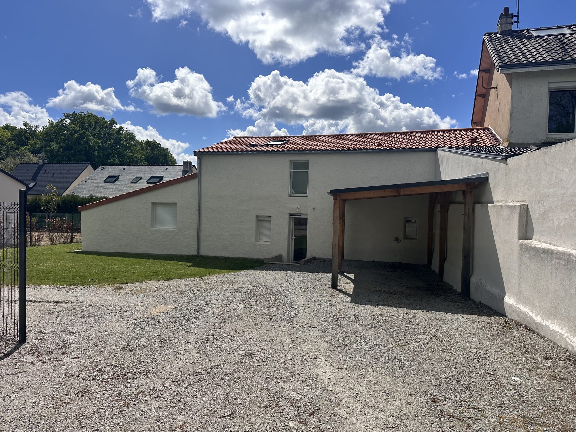 A l'extérieur un carport avec une prise permettant de recharger une voiture électrique accompagné de 2 autres places de parking