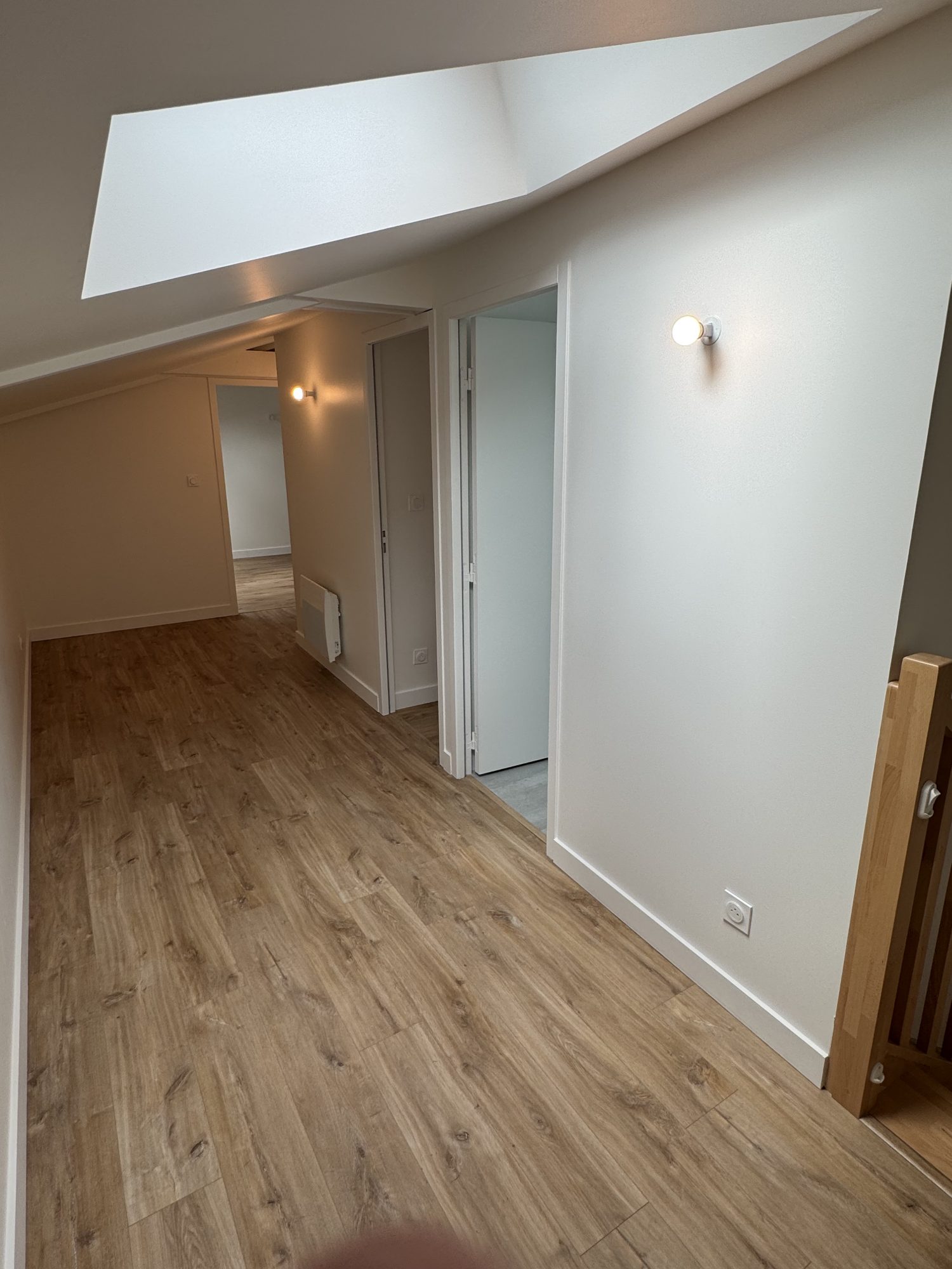 Au premier étage, une beau dégagement distribuant une salle de bain avec WC, et 2 grandes chambres équipées de placards.