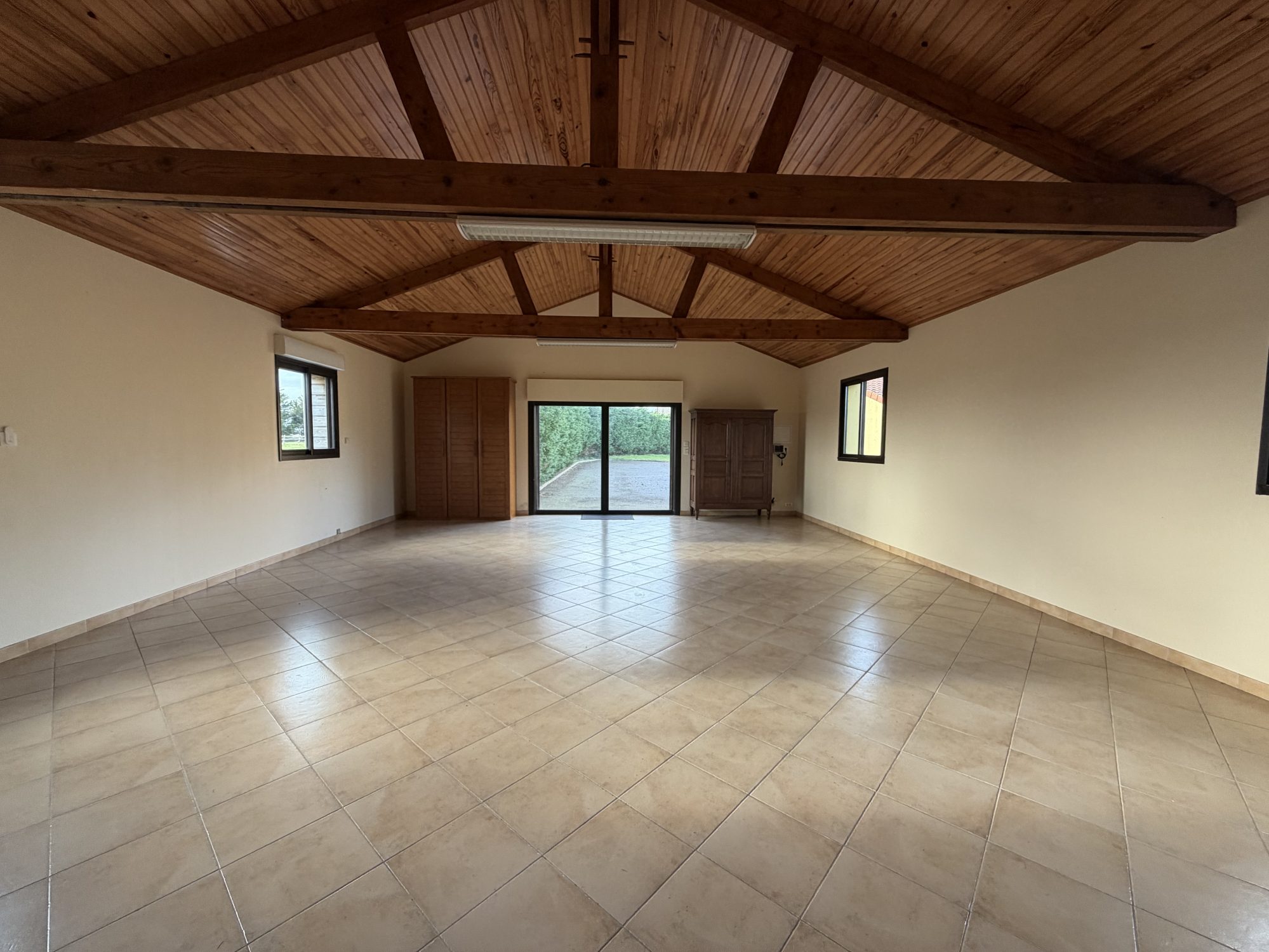 D’une surface habitable d’environ 199 m², la maison offre de beaux volumes et une distribution fonctionnelle. Elle se compose d’un vaste séjour cathédrale d’environ 60 m², très lumineux, avec une cuisine aménagée et équipée ouverte sur la pièce de vie, complétée par une arrière-cuisine.
