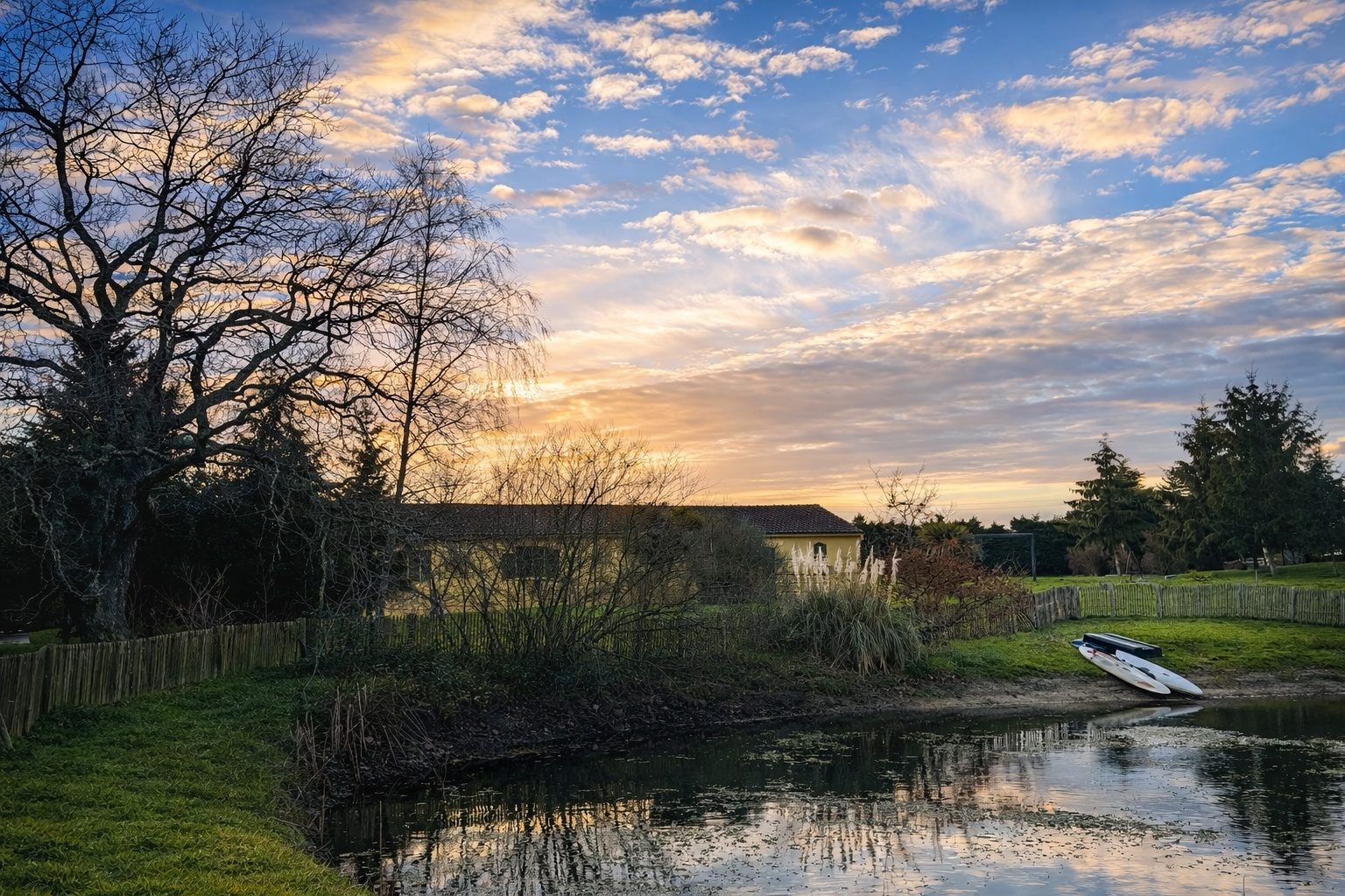 À l’extérieur, vous bénéficierez d’un grand terrain d’environ 6 800 m², régulièrement entretenu par un jardinier, comprenant un étang sécurisé et une zone boisée, idéal pour les amoureux de la nature, les moments de détente ou les activités de plein air.