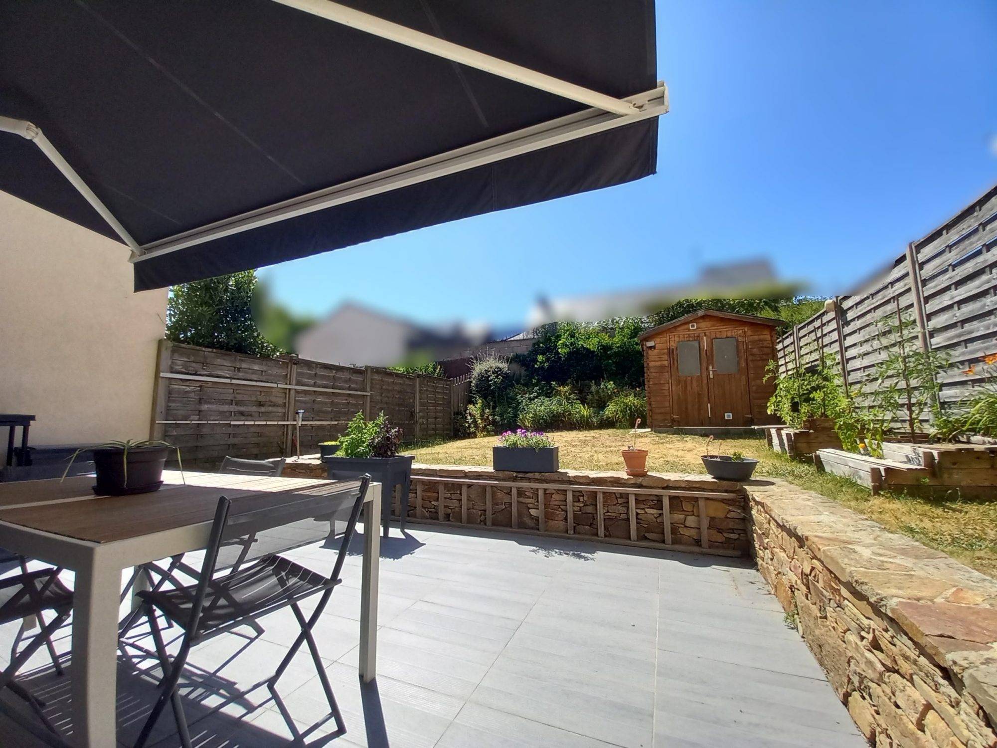 Profitez d'un jardin et d'une terrasse exposés ouest, parfaits pour des repas en plein air ou des moments de détente au soleil. La vue sur le jardin et la terrasse depuis le séjour apporte une sensation d'ouverture et de sérénité.