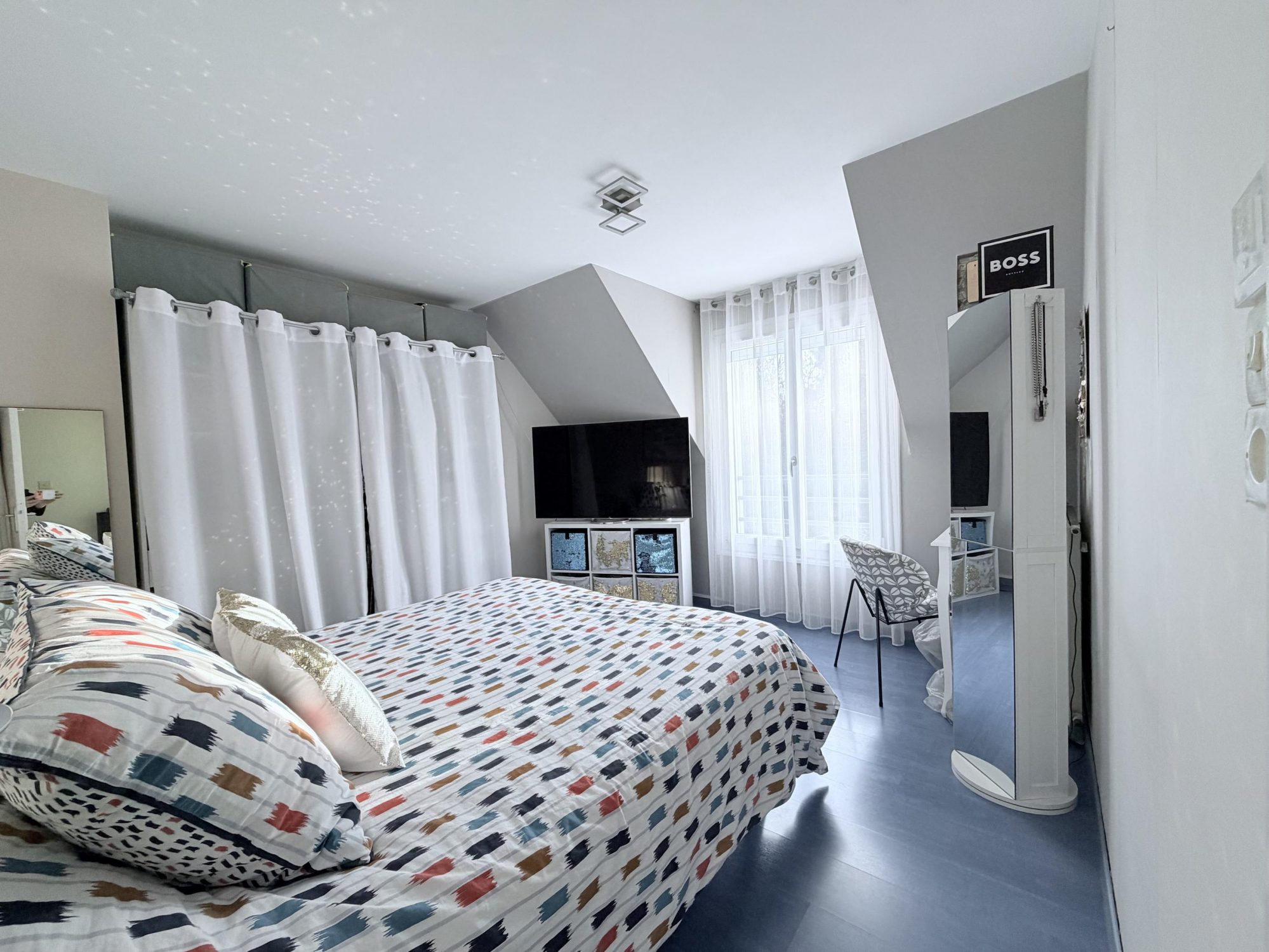 Imaginez-vous dans un spacieux séjour de 49 m², avec sa cheminée, parfait pour des moments conviviaux en famille ou entre amis. La cuisine indépendante mais attenante à la pièce de vie, est aménagée et équipée, cela reste un véritable atout pour les amateurs de cuisine. Les quatre chambres, dont une de 20m² au sol, offrent des espaces confortables.