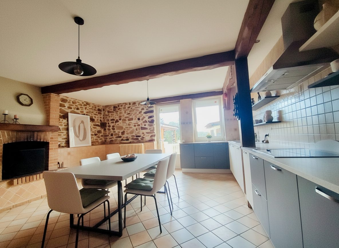 Cette maison de 7 pièces, comprenant 5 chambres, est idéale pour les grandes familles ou pour ceux qui aiment recevoir. La cuisine aménagée, les 2 WC indépendants et la salle de bains moderne ajoutent un confort contemporain à ce bijou du passé. Les ouvertures en bois/PVC et l'exposition sud inondent les pièces de lumière naturelle, créant une atmosphère chaleureuse et accueillante.