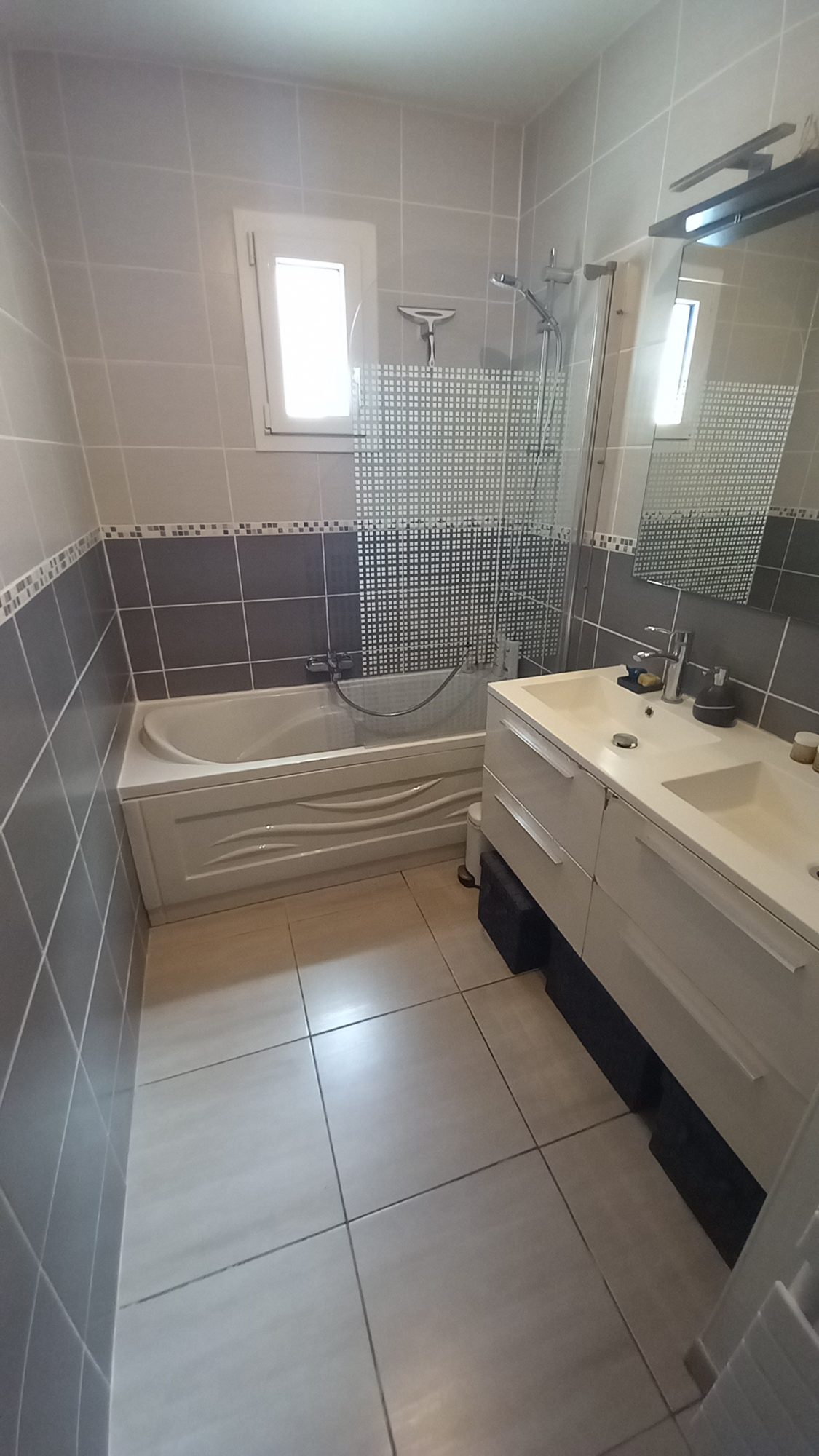 En entrant, vous serez immédiatement charmé par la belle pièce de vie lumineuse qui donne sur une grande terrasse sans vis à vis. La cuisine aménagée et équipée ainsi que la salle de bains et les WC se trouvent également au rez-de-chaussée. À l'étage, vous découvrirez un dégagement offrant de nombreux rangements ainsi que trois chambres allant de 9,20 m² à 12,20 m². Un garage attenant à la maison complète ce bien, qui est implanté sur un terrain d'environ 400 m².