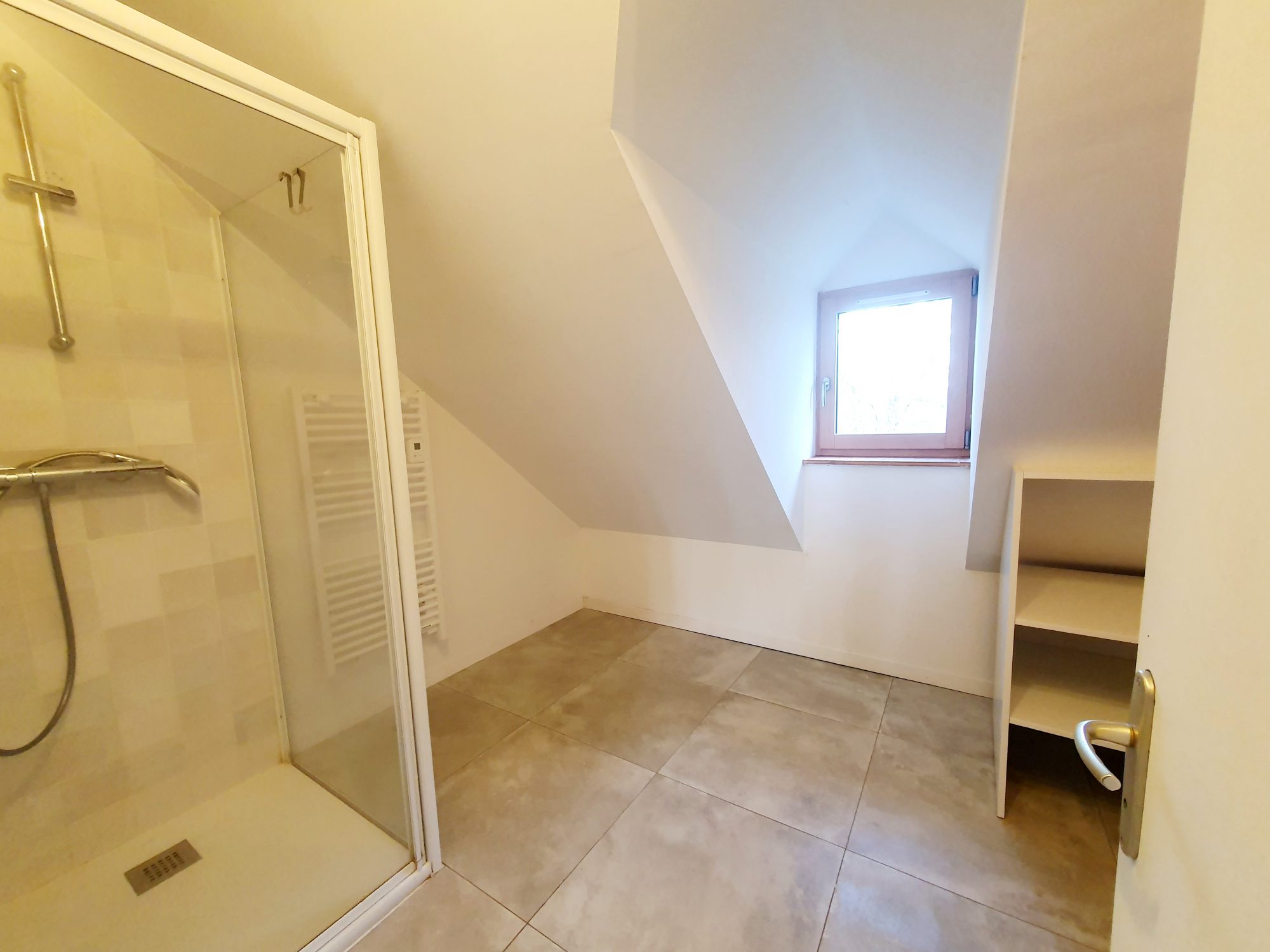 A l'étage: palier, 2 grandes chambres, une salle de douche,