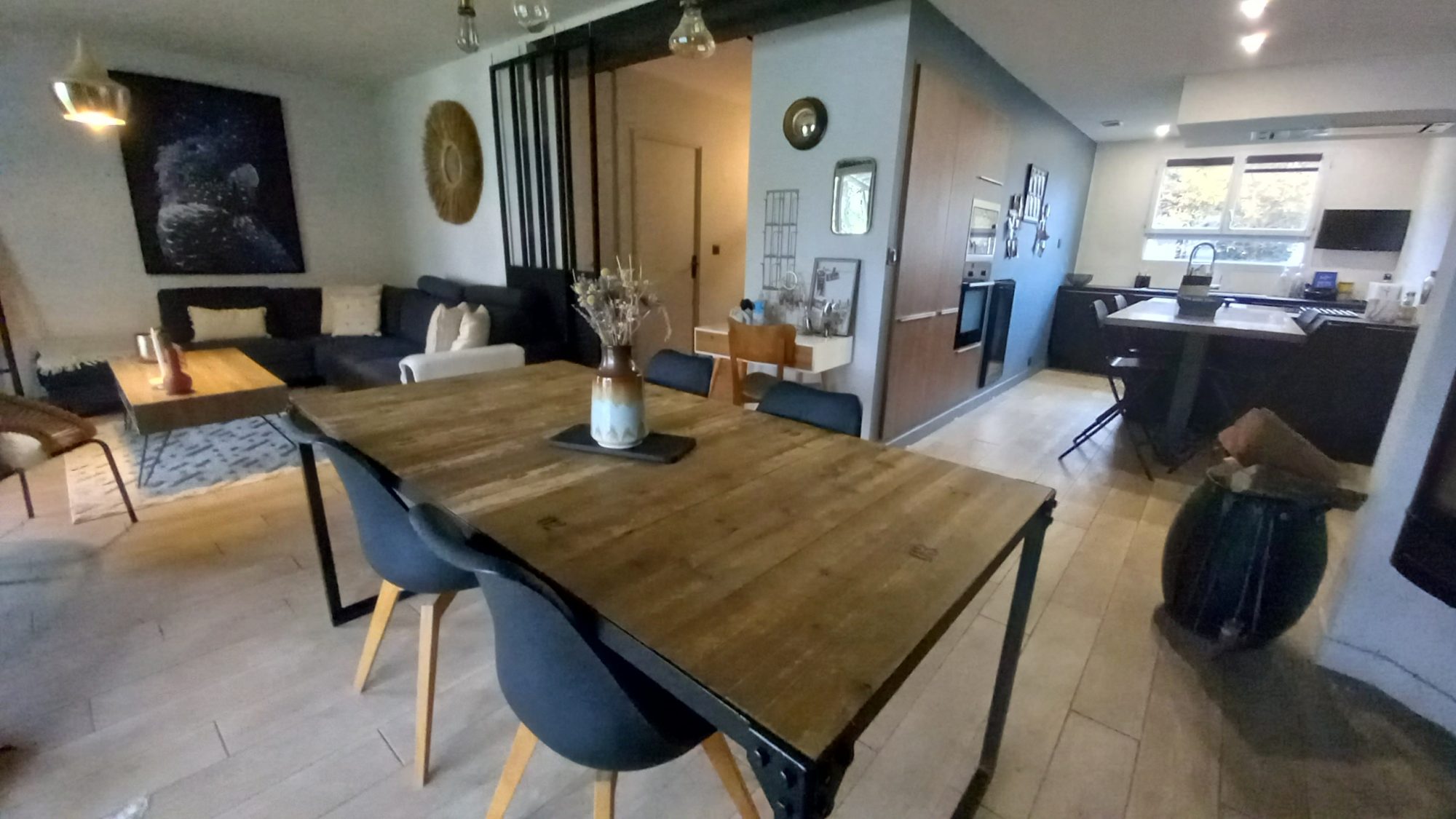 Dès l'entrée, vous serez séduit par la vaste pièce de vie disposant d’un poêle à bois et d’une cuisine américaine, aménagée et équipée invitant à des moments conviviaux autour de repas partagés.