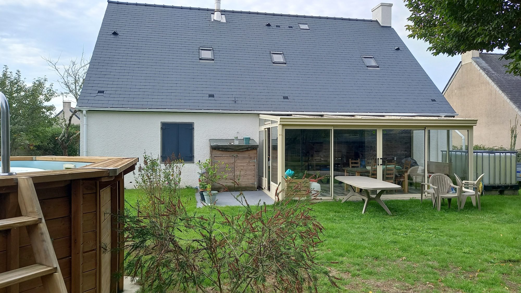 A l’extérieur le jardin de plus de 800 m² bien entretenu et sans vis à vis vous invite à profiter des beaux jours. La piscine hors-sol ajoute une touche de détente à votre quotidien.