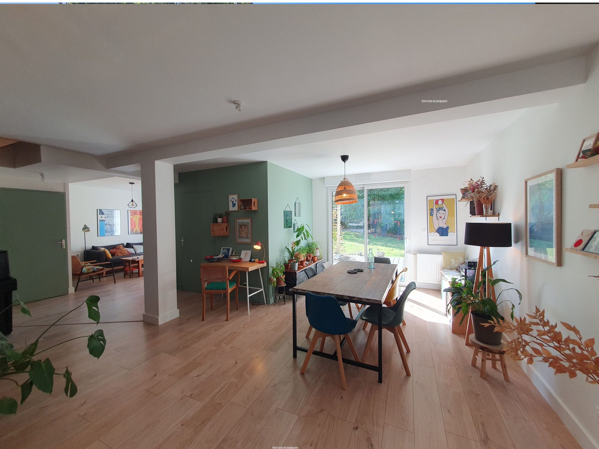 Comprenant: Hall d'entrée avec placard, desservant un salon/séjour qui donne sur une terrasse et pergola en bois, permettant de profiter du soleil toute la journée, une salle à manger, cuisine ouverte aménagée et équipée, buanderie, salle de douche et toilette PMR, (possibilité de créer une 5-ème chambre au rez-de-chaussée).
