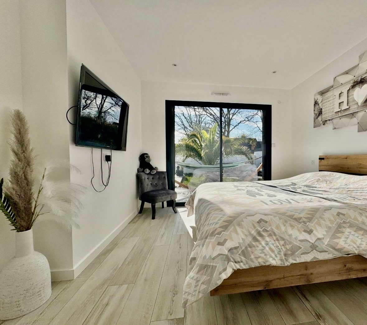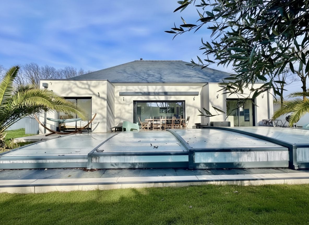 Vous découvrirez une maison contemporaine RT 2020 de plain-pied, construite en 2021, d’une surface d’environ 145 m².
