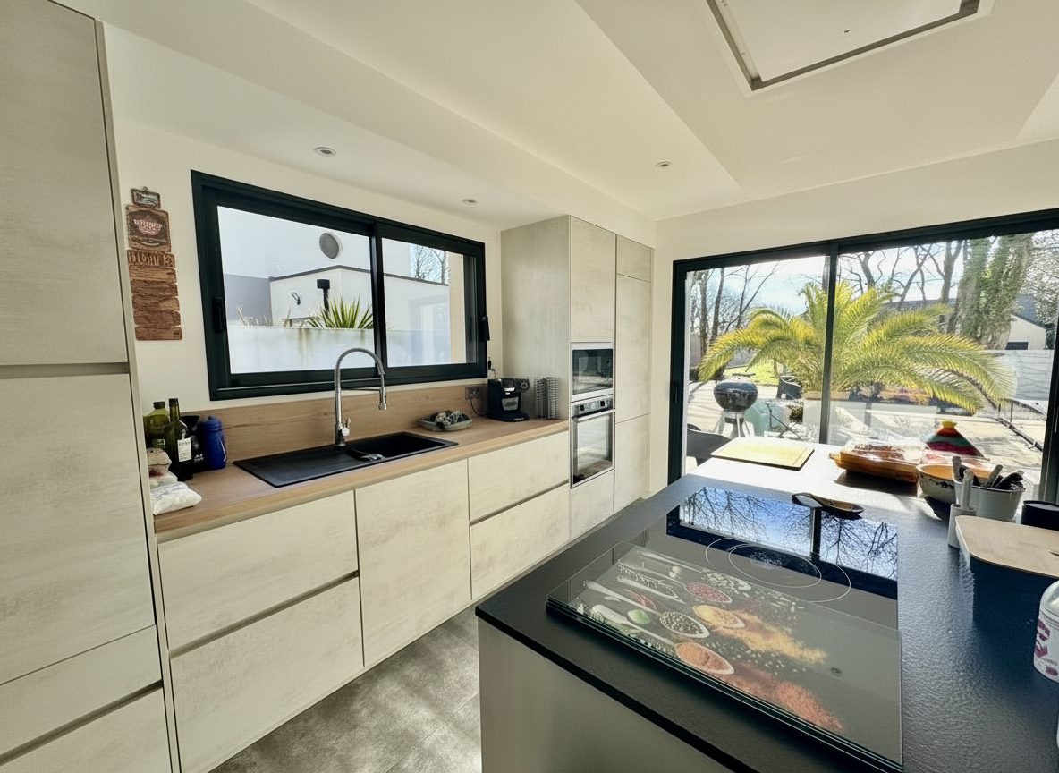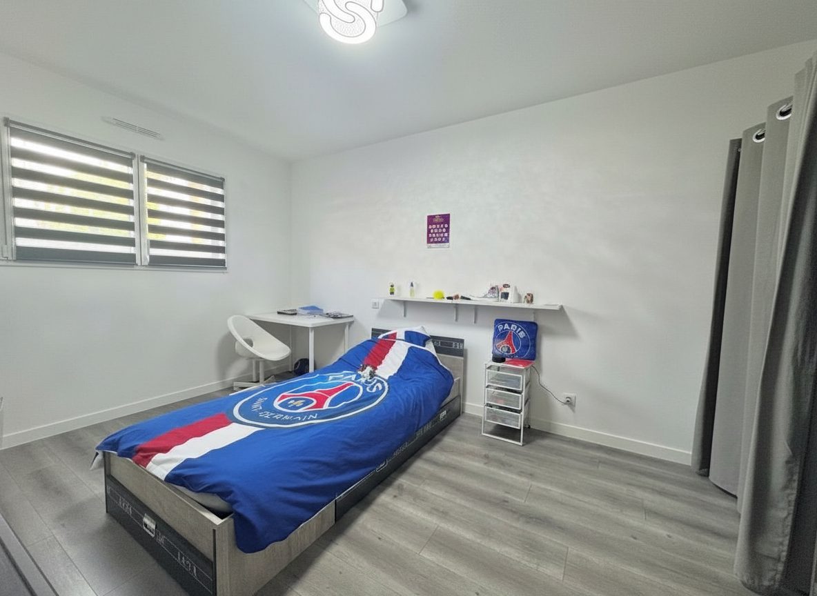 Vous découvrirez une maison contemporaine RT 2020 de plain-pied, construite en 2021, d’une surface d’environ 145 m².
